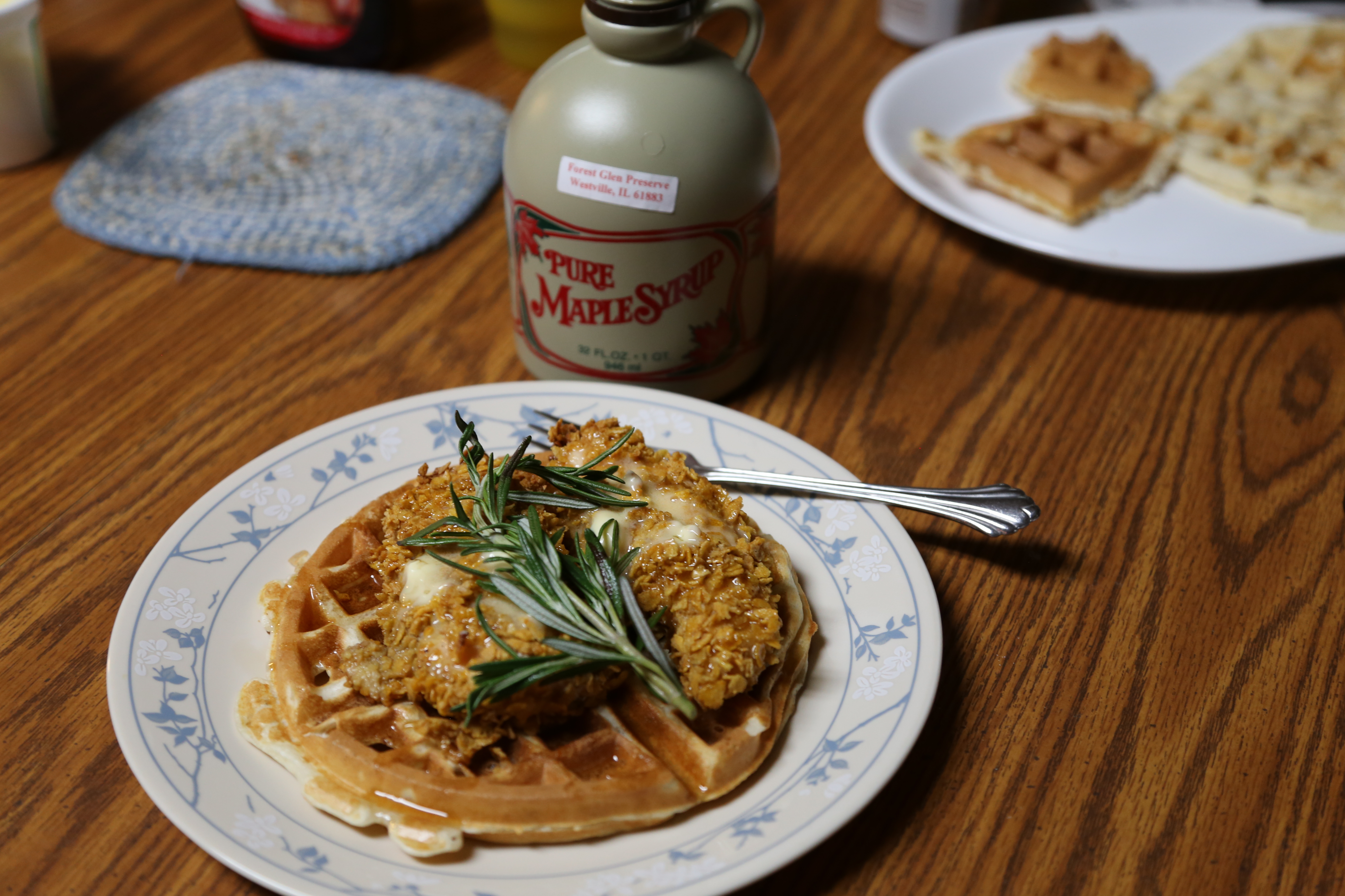 Mind you, central Illinois isn’t the South, but there is a lot of country, and often the two get confused. Either way, I expected my father-in-law to have at least heard about chicken and waffles, but he thought we were nuts.
