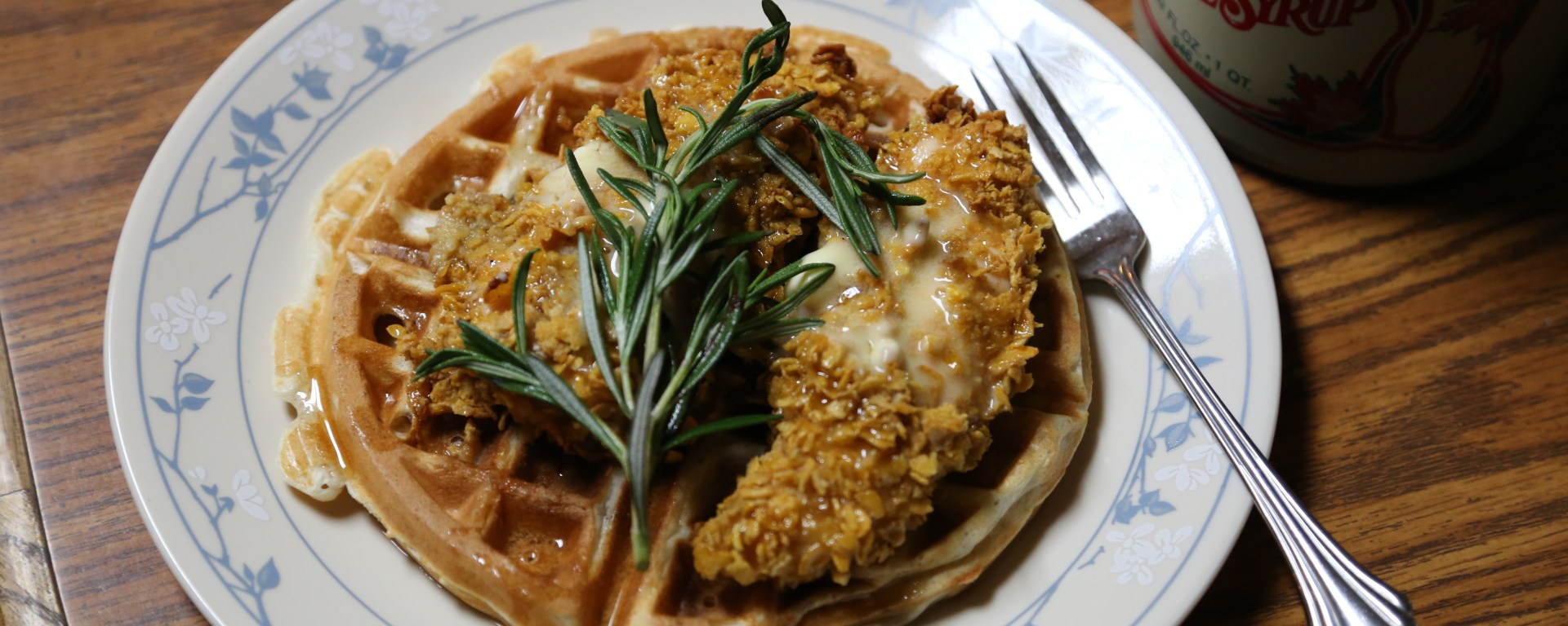 Speaking of the batter, we tried to make the chicken dredge very comparable to the waffle batter, cutting down on required ingredients. That also helped with the pairing.