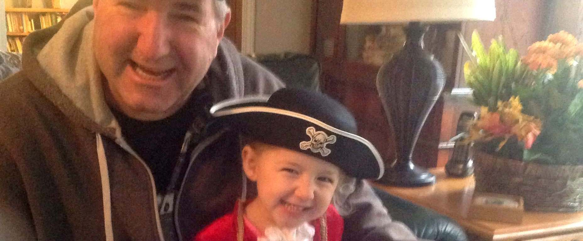 Ginny dressed as a pirate princess. Earlier that morning, she was in her Izzy costume we put together (Izzy is a character from “Jake and the Neverland Pirates”…Ginny’s all-time favorite show these days). We had to stop by the dentist to check on her chipped tooth, and on the way back, we found a garage sale with kids costumes on display. I stopped to see if they might have something for Jack for next year, but we found a pirate princess costume in Ginny’s size instead. Seeing as how Ginny is sort of obsessed with pirates (I can’t lie…I love that!), we bought the dress and pirate hat. Thomas tucked Ginny’s foam Neverland sword into the sash tied behind her back, which really completed the look.