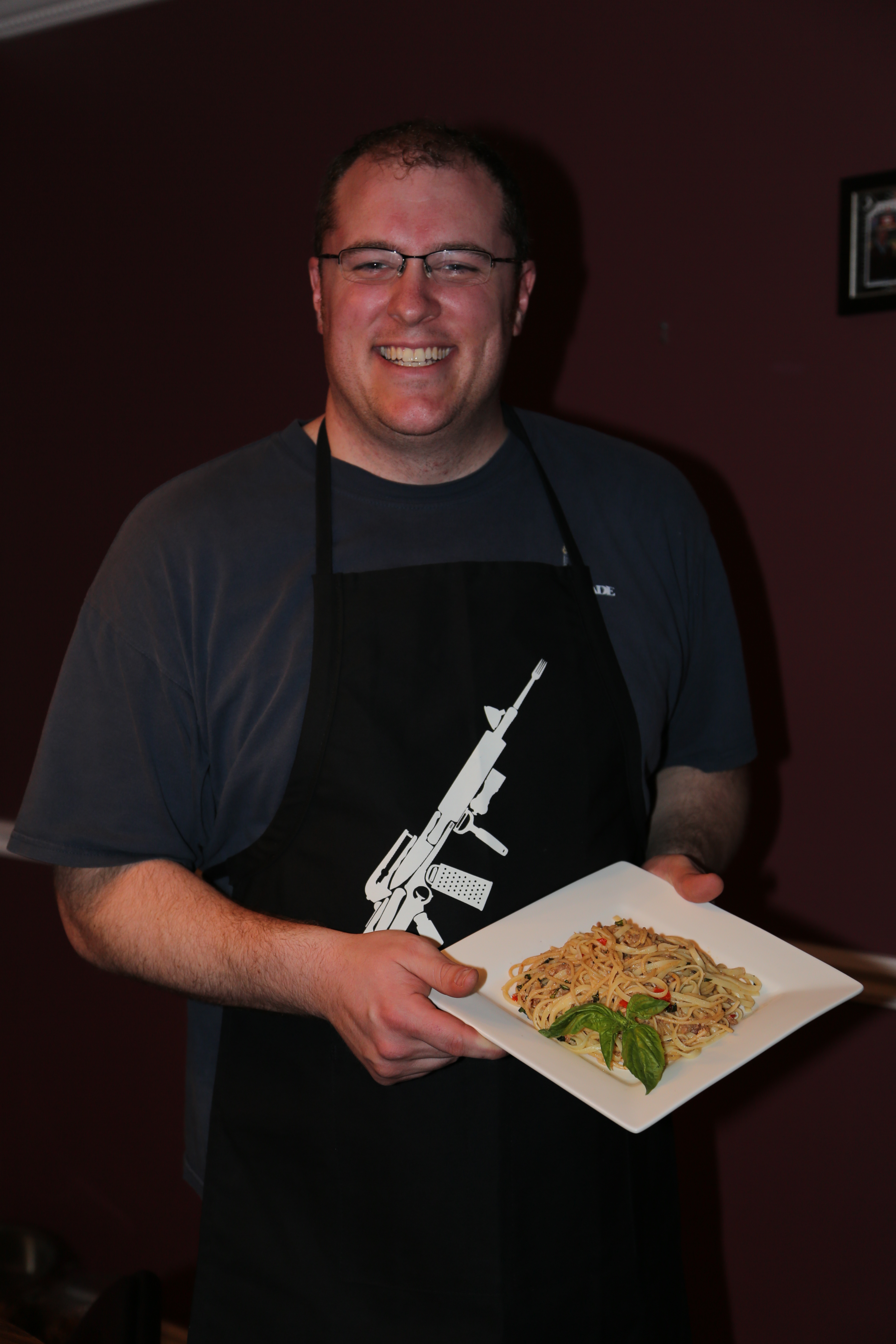 It’s a pretty good arrangement actually. Shawn and I cook, Thomas takes care of Ginny…that is until I have to run and nurse her while shouting directions for whatever cooking process I was in the middle of…and then we all eat.